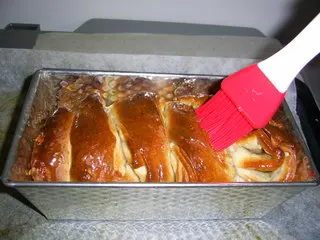 ↓焼きあがったらラムはちみつソースを塗って