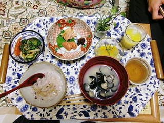 長丁場の出産を終えて、魂が抜けてしまったかと思うくらいヘトヘト。起き上がることすらしんどくて。8時過ぎに出された朝食(↓)も、1時間近くかかってやっと食べ終えました。