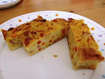 なんでも、巷で流行っているらしい、「ケークサレ」とやらを作ってみました。いろいろレシピを見ると、ブロッコリーを使っているものが多かったのですが、常備していなくて、ありもので作ったので、色どりが悪くなってしまいました。入れたのは、人参、玉ねぎ、コーン、ベーコンです。