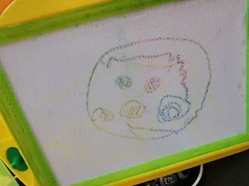 モモちゃんが、絵を見せてきたので、「アンパンマン?」と聞くと、「違うよ、ノスケくんだよ~」とのこと。 !!なかなかうまいんじゃない?・・・親バカ全開、かな;;