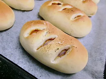 太くて美味しそうなウィンナーを買ったので、ウィンナーパンを焼きました。 ↓ 二次発酵前 ↓ 二次発酵後 ↓ ペッパーを振って(中にケチャップとマスタード塗ってます) ↓ 焼きあがり ふんわりモッチリ焼…