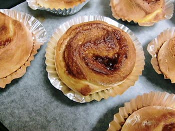 大好きなシナモンロールを作ってみよう。ということで、初挑戦。 ↓ 成形 ↓ 二次発酵 ↓ 焼きあがり いつもノスケくんとモモちゃんのご機嫌をとりながらバタバタ作るので、アイシングなど全くなしの焼きっぱ…